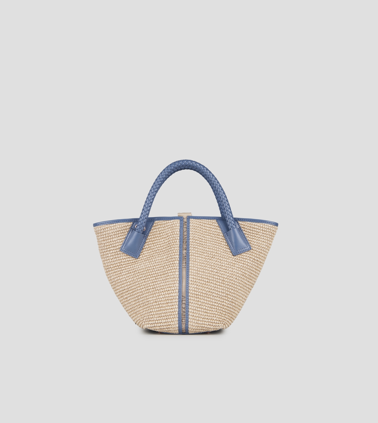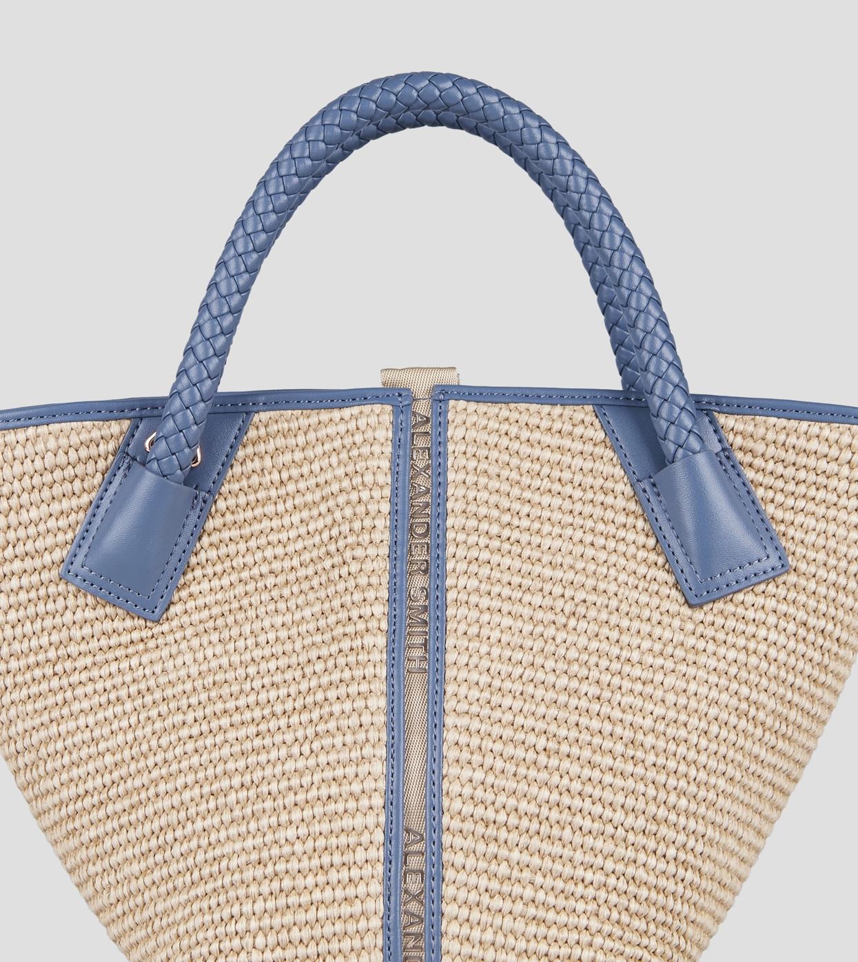 Lauren Small handbag with shoulder strap in beige raffia and woven azure handle