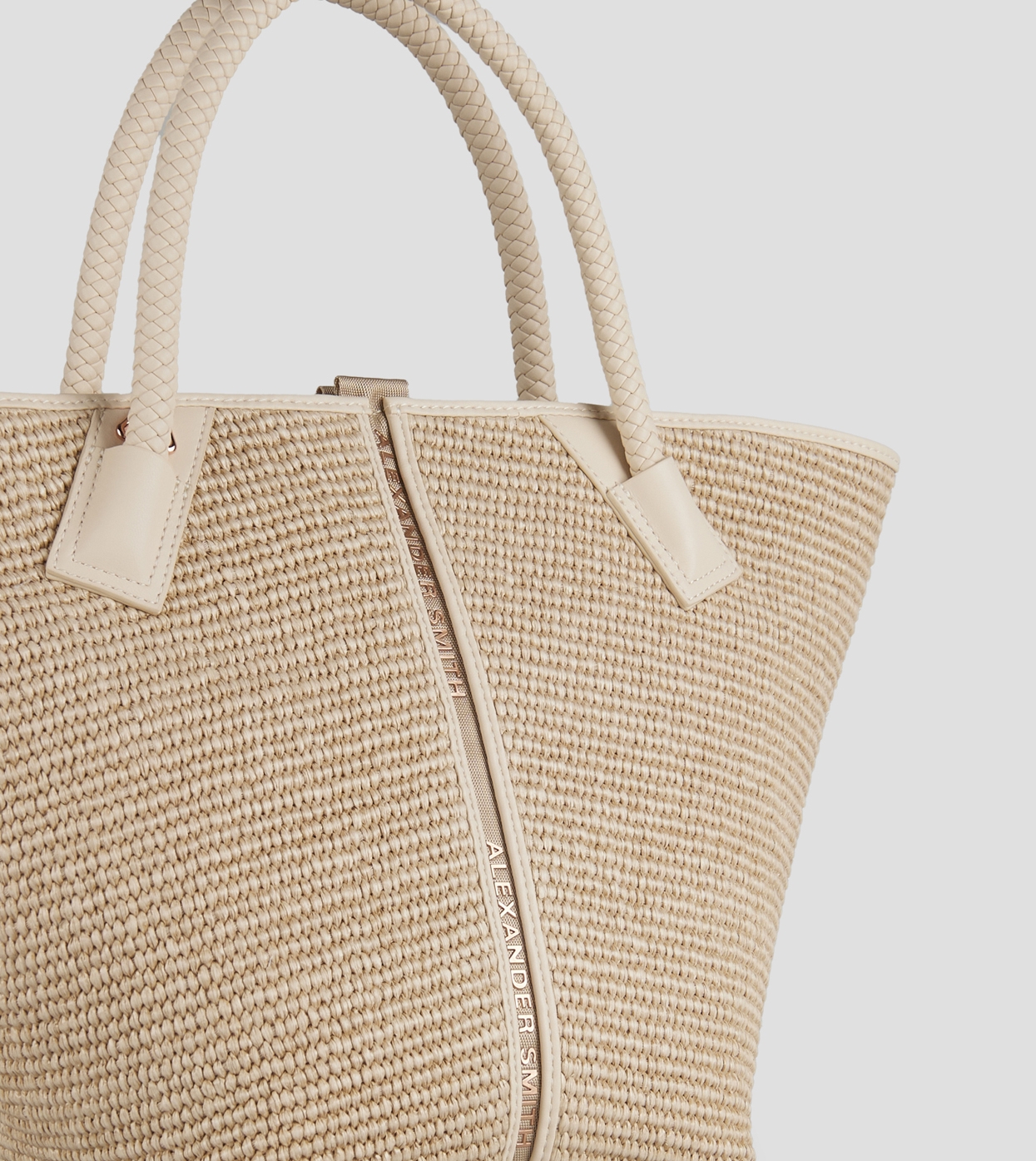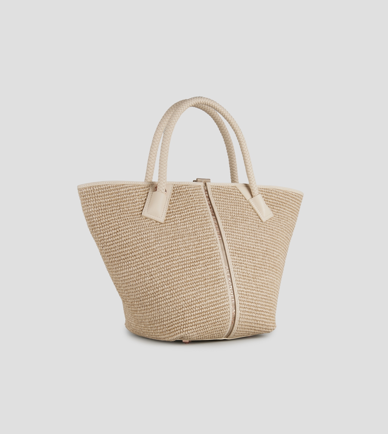 Lauren Medium handbag with shoulder strap in beige raffia and woven sand handle