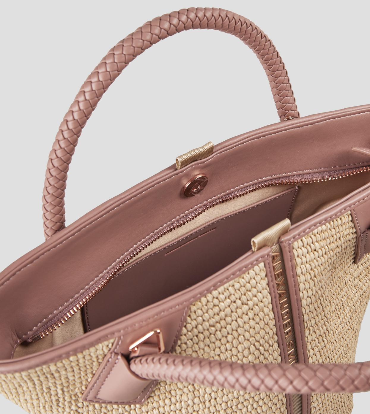 Lauren Small handbag with shoulder strap in beige raffia and woven nude handle