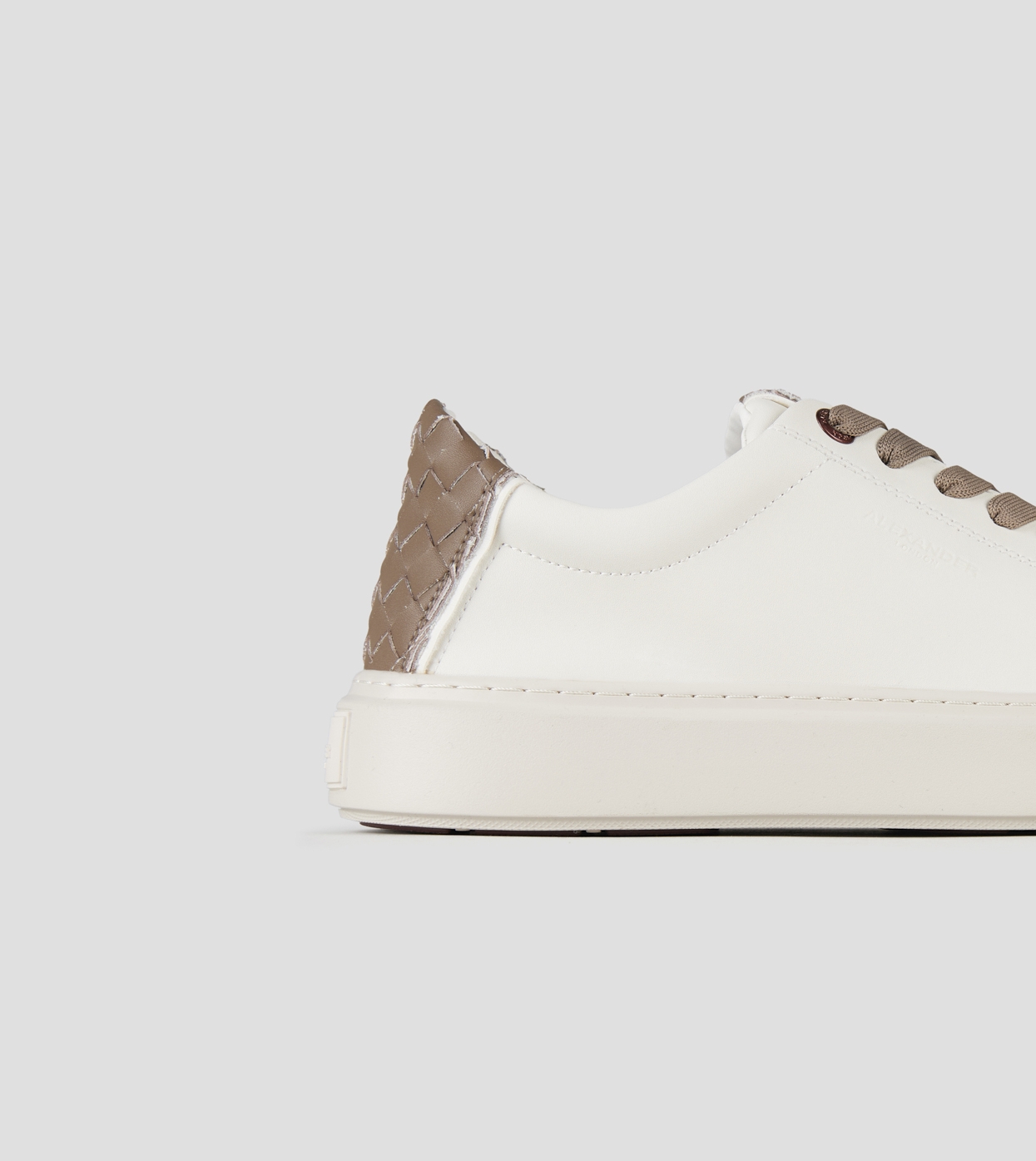London Man in white leather and woven brown leather back