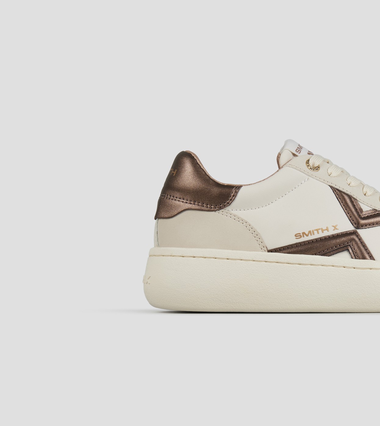 Ocean Woman in white with bronze side logo and heel