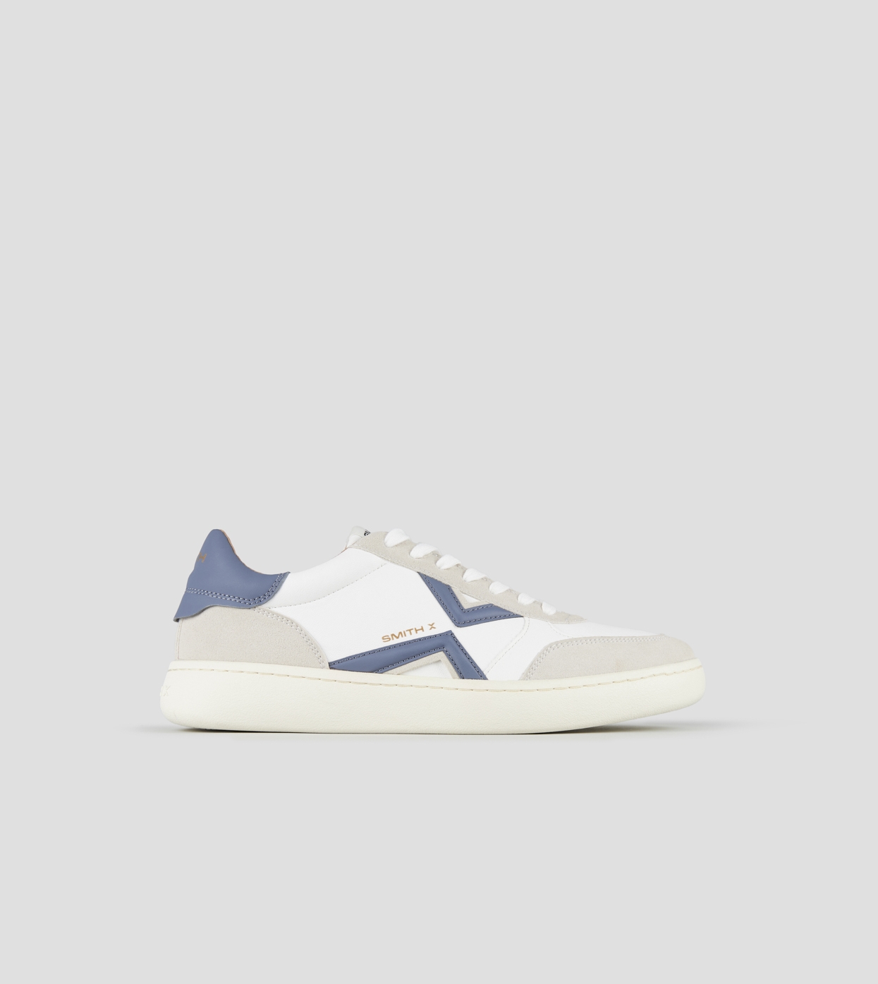 Ocean Man in white leather and suede details, with blue logo and back