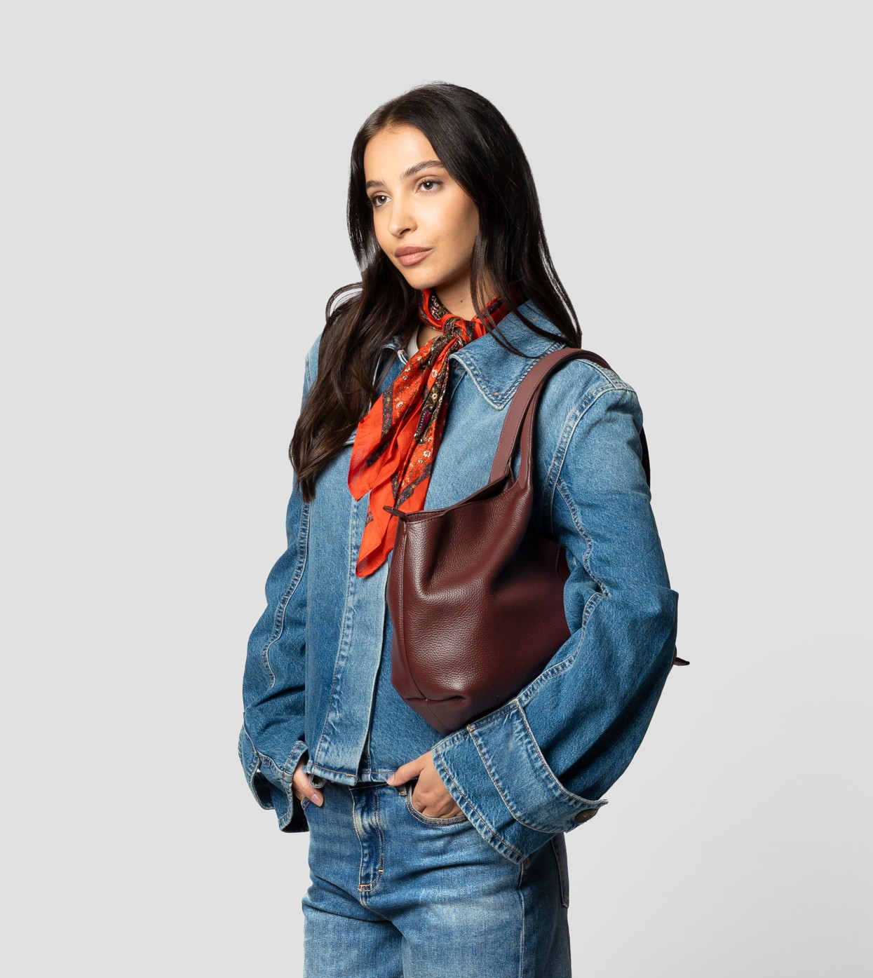RACHEL is the shopper bag that strikes the perfect balance between comfort and style with its fluid shapes and generous proportions. The minimalist design enhances its wide and welcoming silhouette, ideal for accompanying every moment of the day with relaxed elegance.