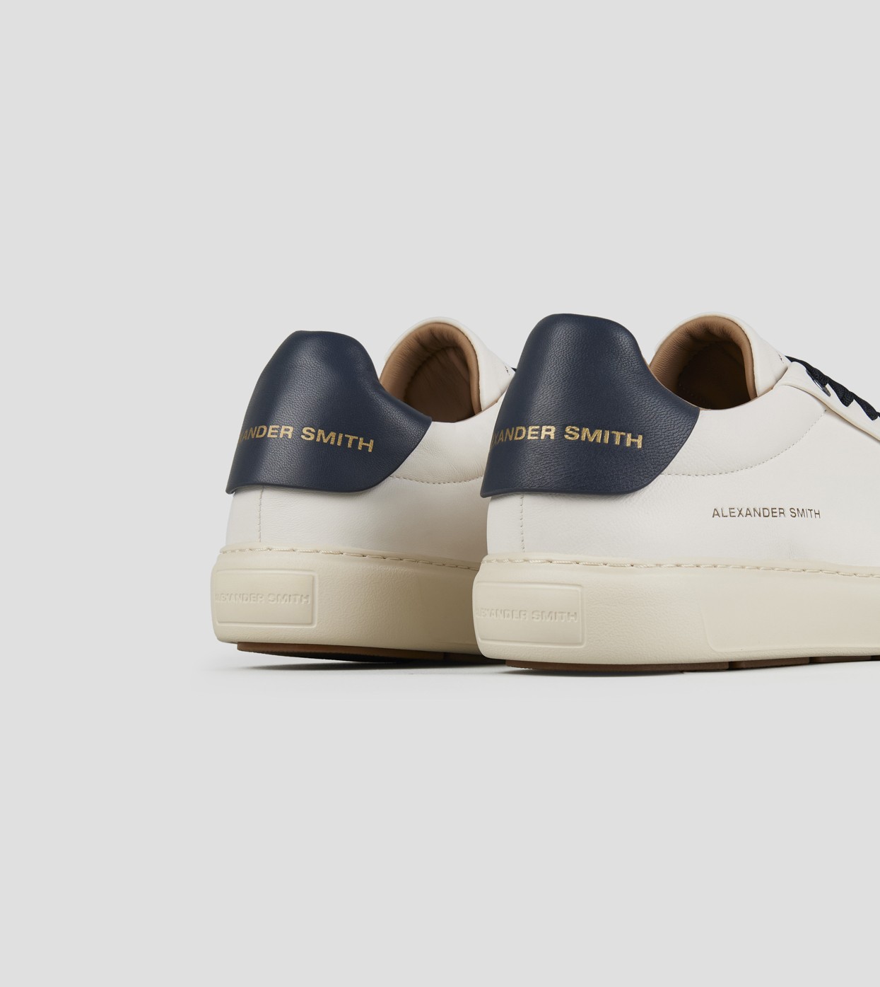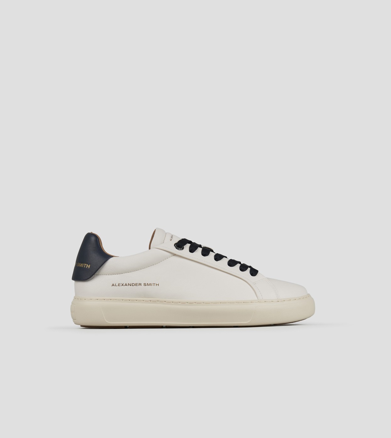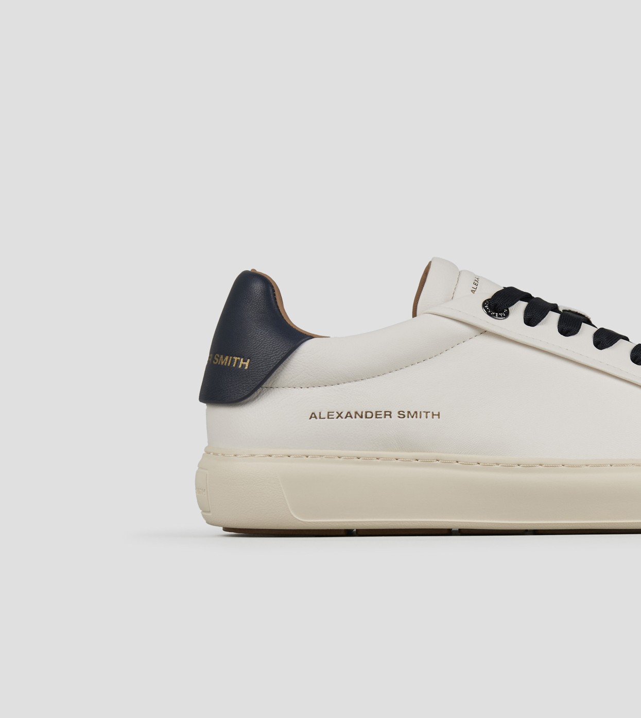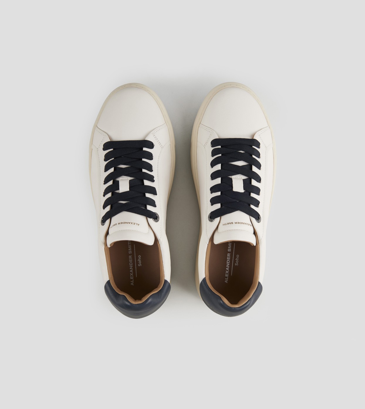 Soho Man in soft white leather with blue back and laces