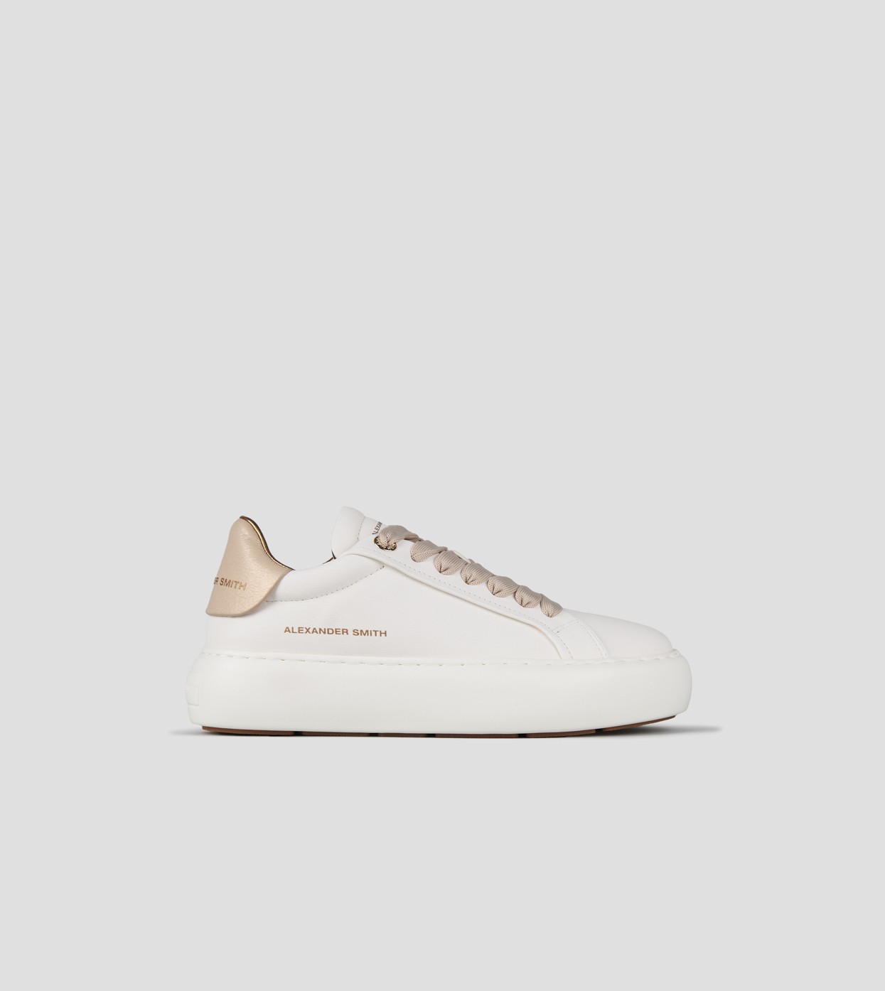 Soho Woman in smooth white leather with gold laminated cracklè heel