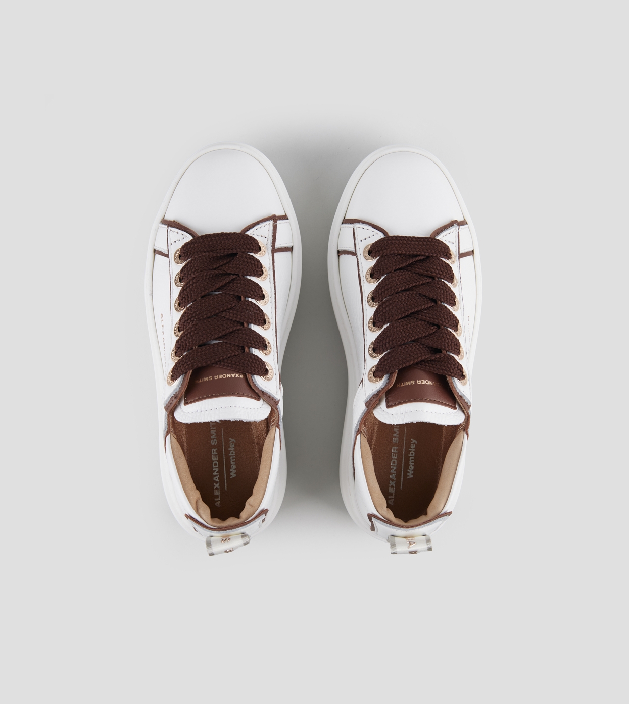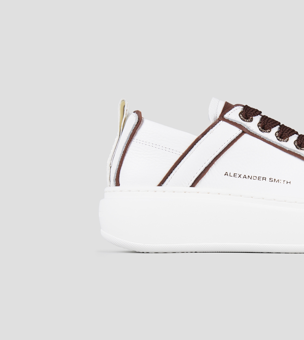 Wembley High Woman in white leather and details in dark brown