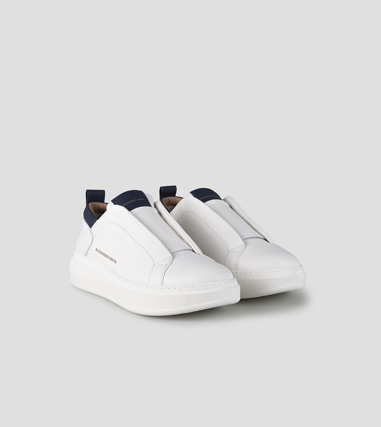 Wembley Slip-on Man in smooth white leather with blu details