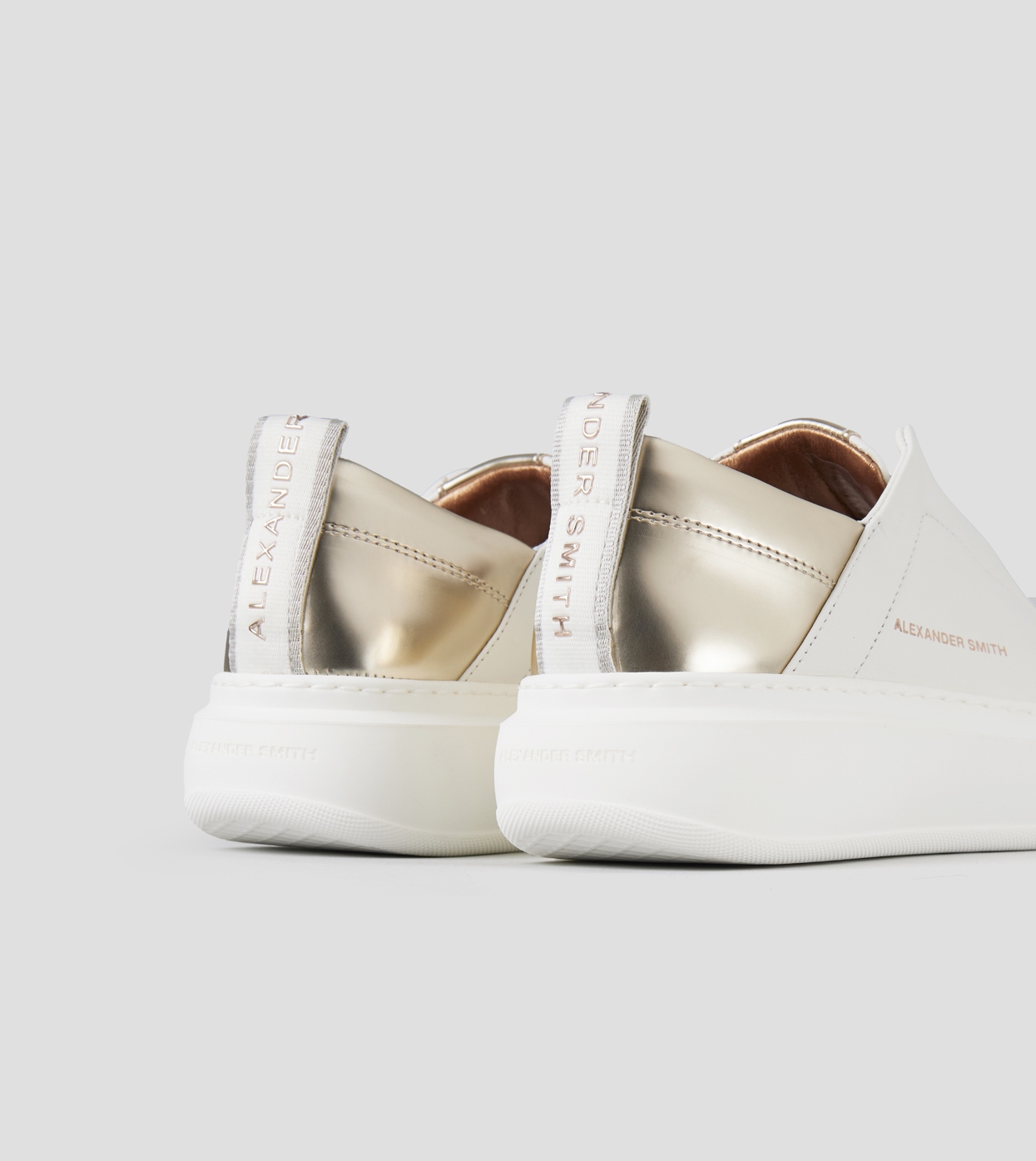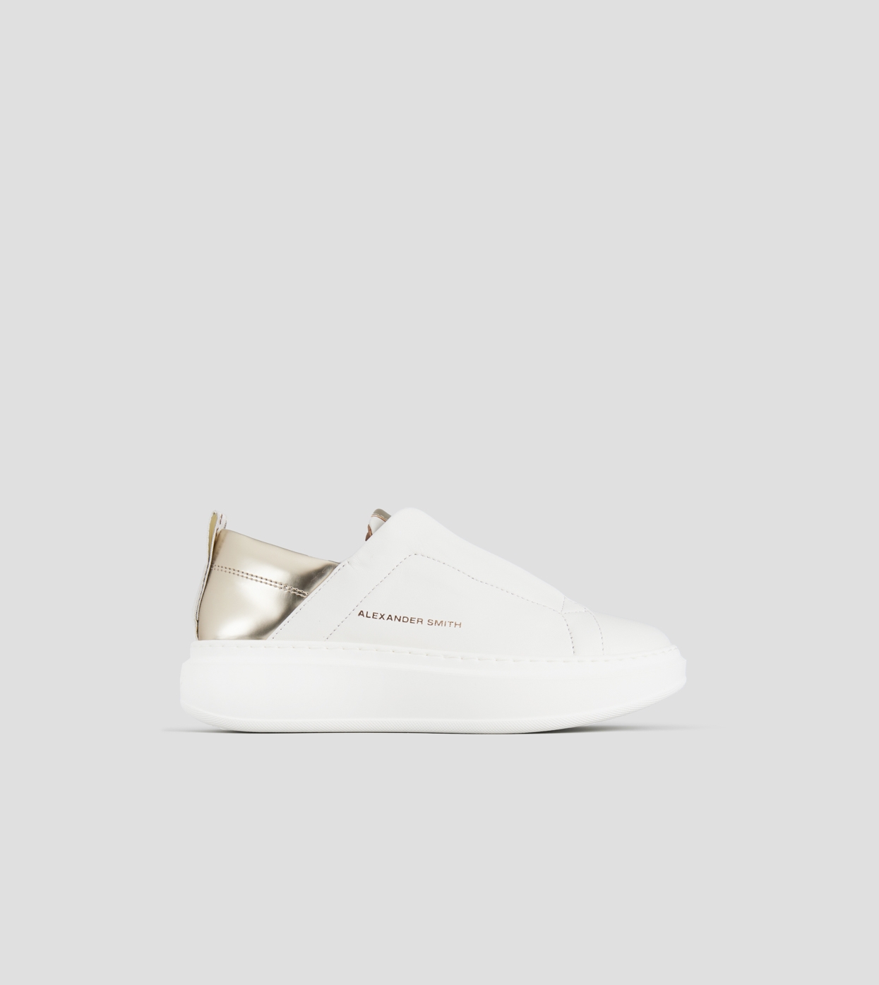 Wembley Slip-on Woman in white leather and gold laminated back