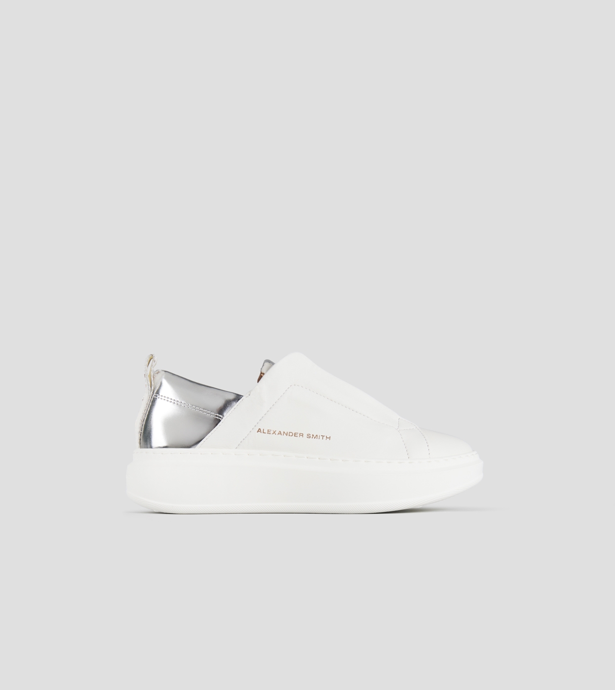 Wembley Slip-on Woman in white leather and silver laminated back