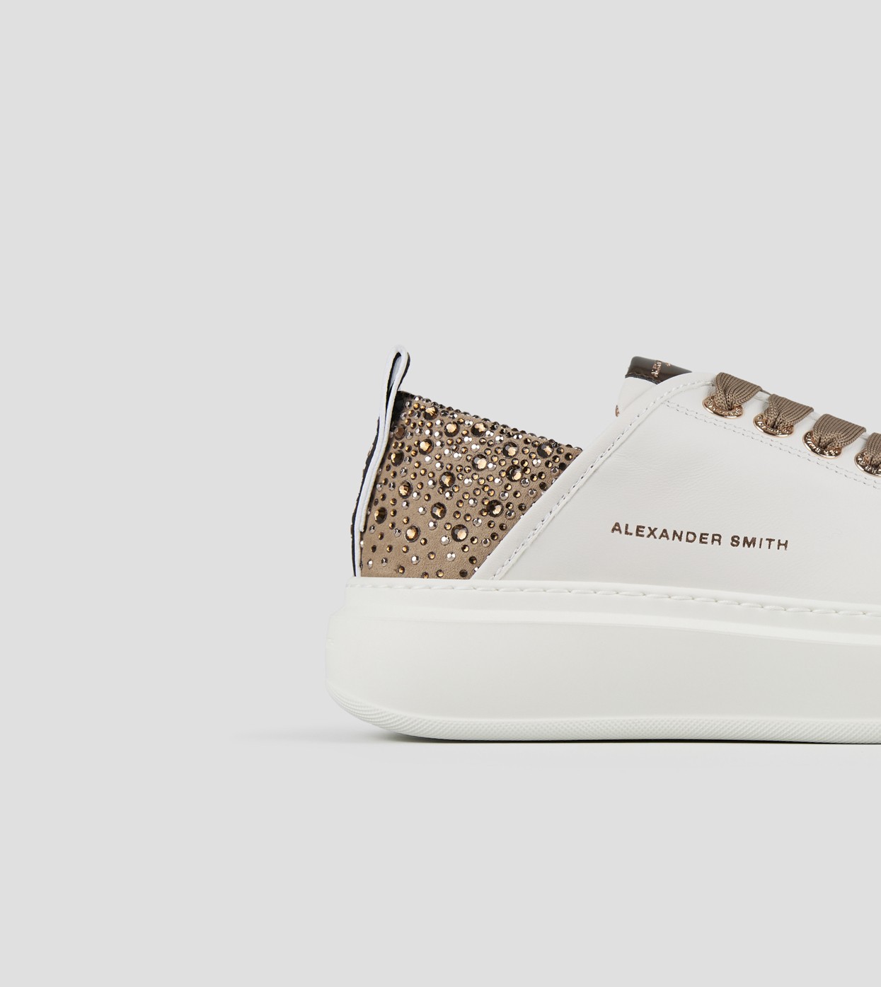 Wembley Woman in white leather and rhinestones beige heel