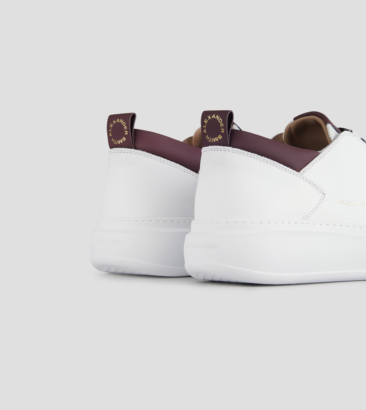 Wembley Man in smooth white leather and bordeaux details