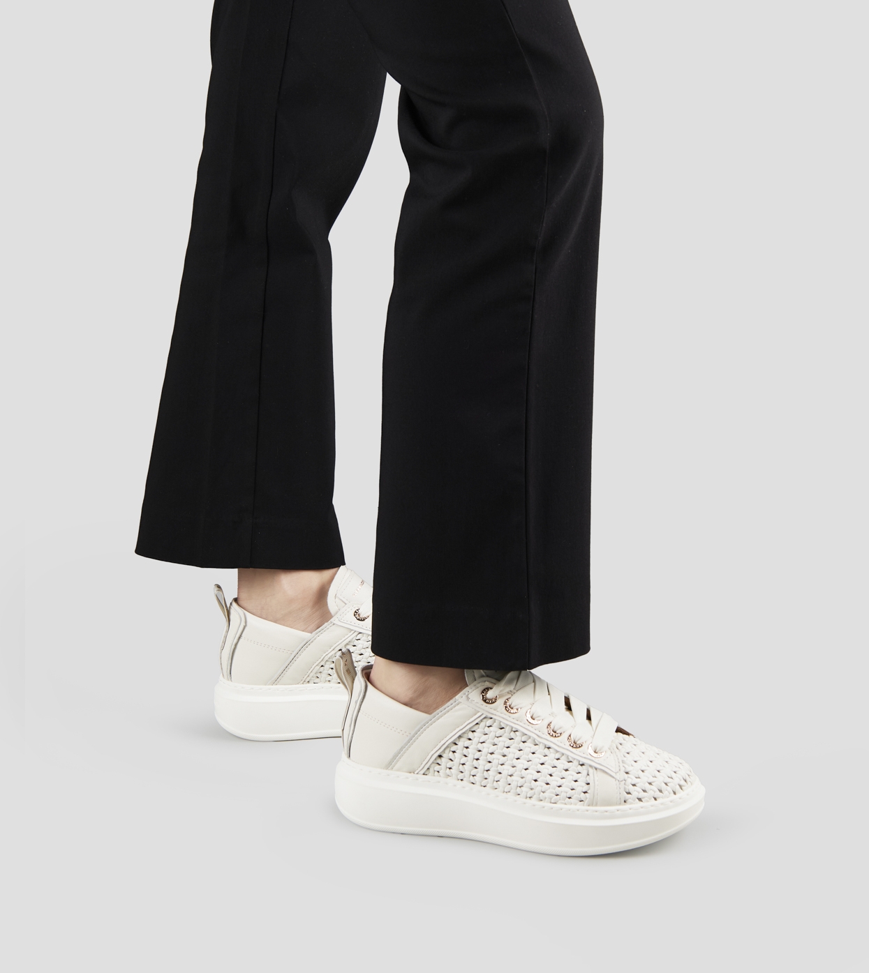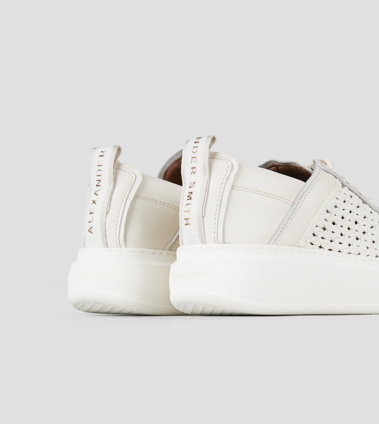 Wembley Woman in white woven leather and smooth leather back